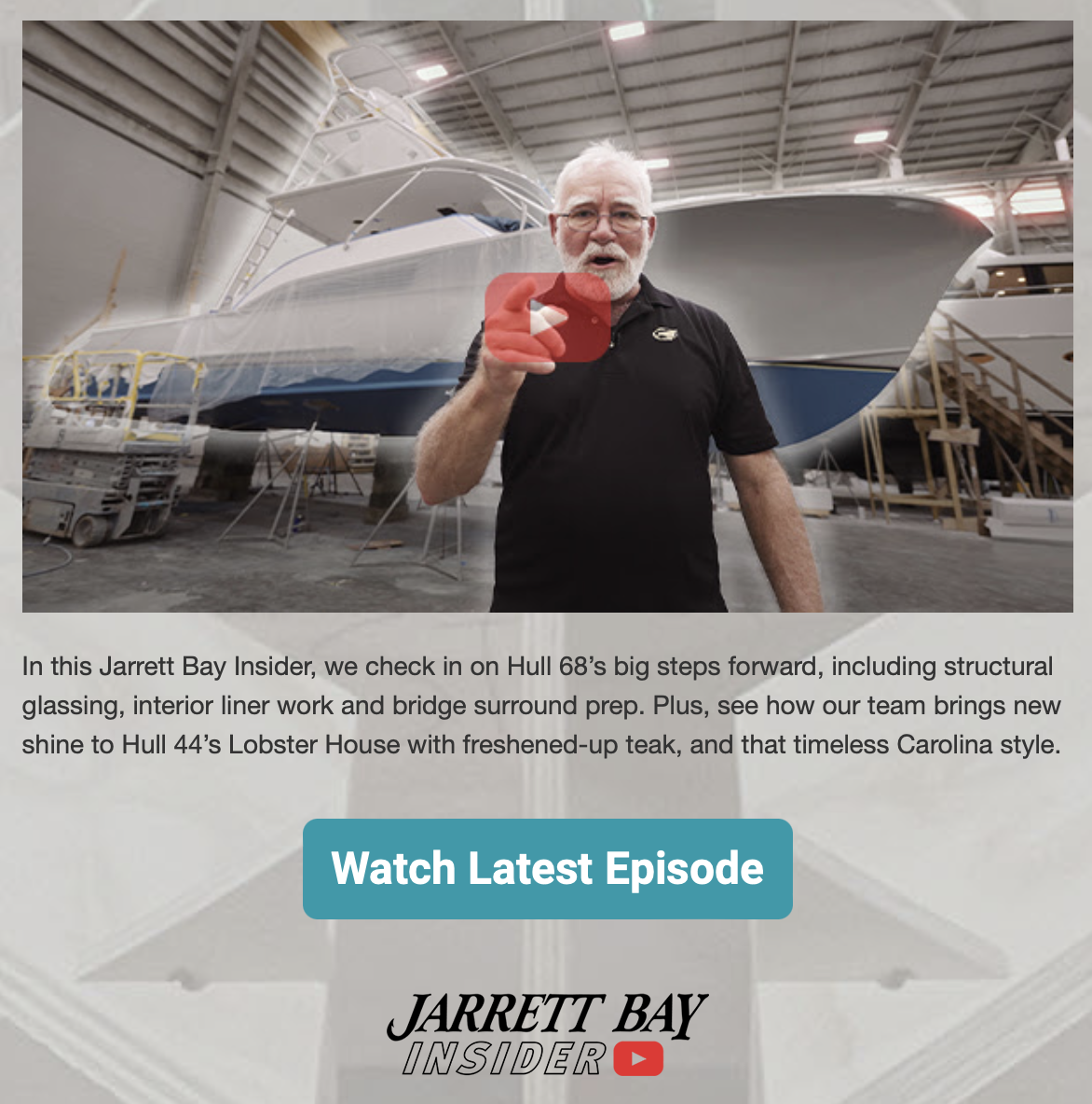 For more than eight years, the Jarrett Bay Insider video series has shared the custom sportfishing boatbuilding process with viewers. Here’s the latest episode featuring Jarrett Bay Hull 68 and Hull 44.